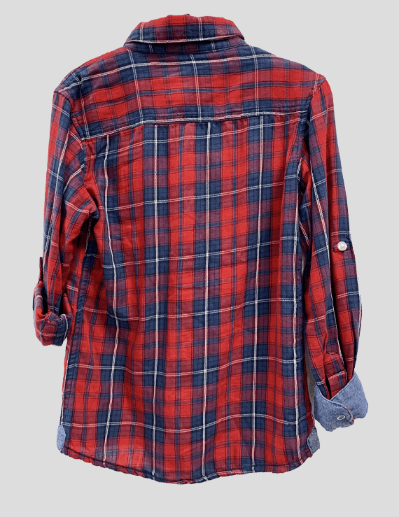 Kids Red plaid longsleeved button up shirt