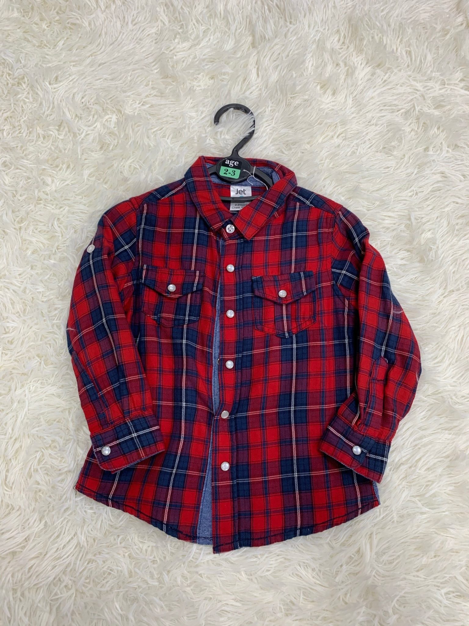 Kids Red plaid longsleeved button up shirt