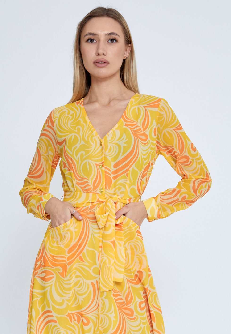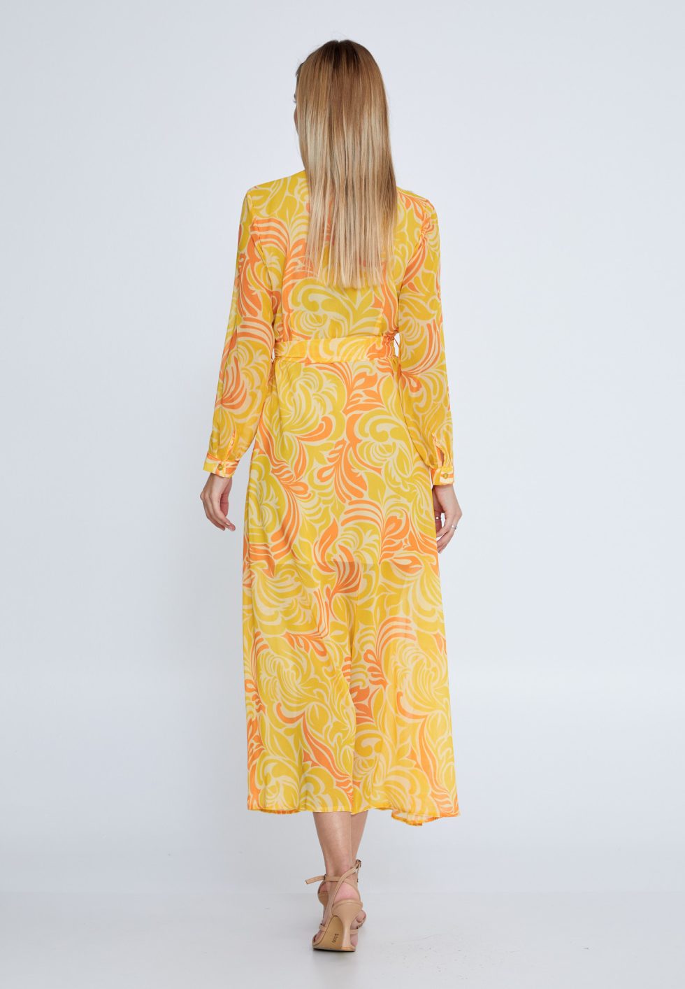 Long Sleeve Midi Chiffon Casual Dress
